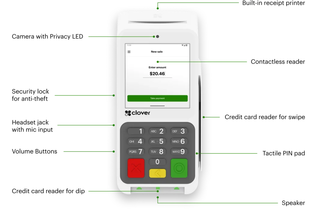 Payments: Accepts contactless, chip, swipe, and debit PIN payments