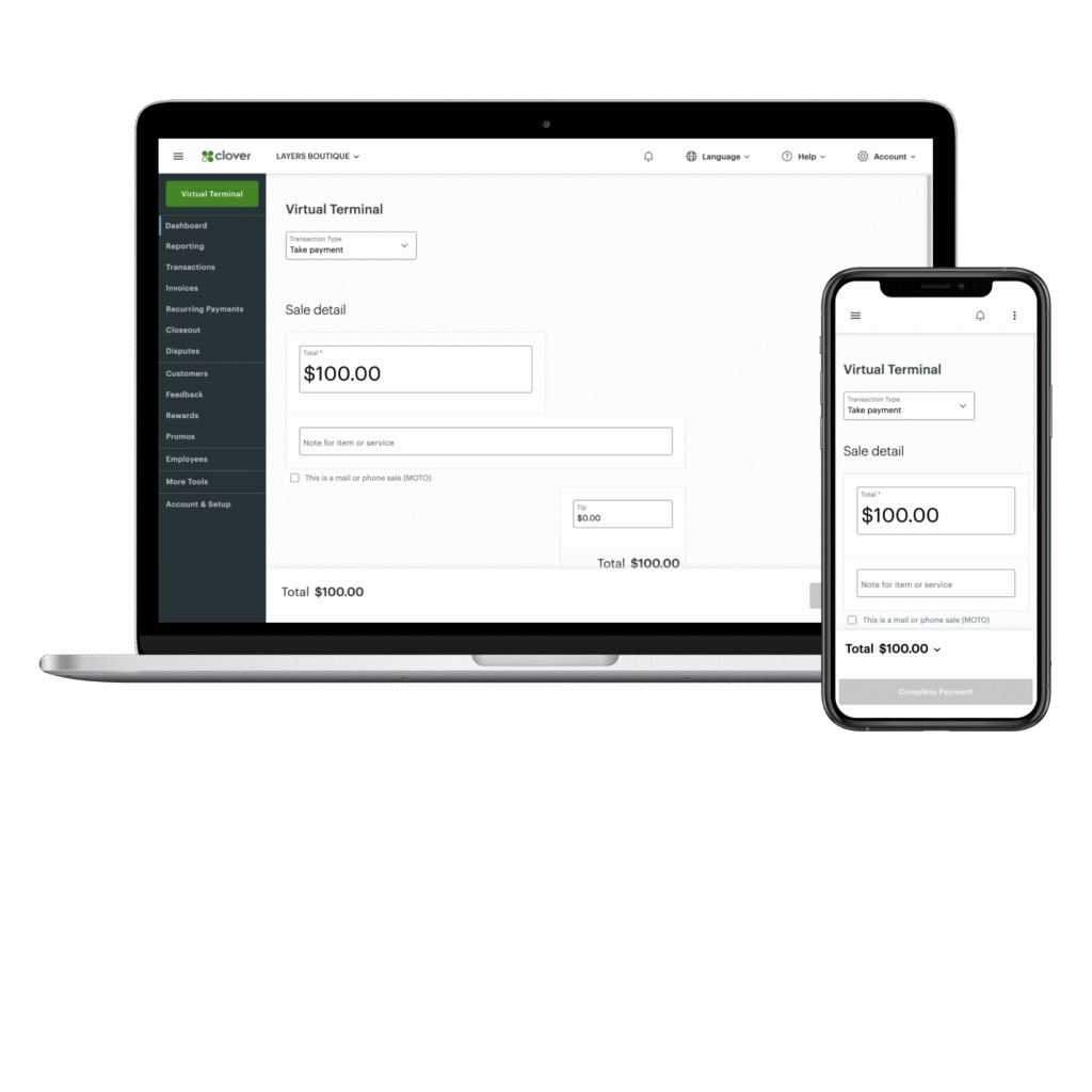 With a no-hardware plan you can request and take credit card payments and manage your business through a web browser or your mobile device.