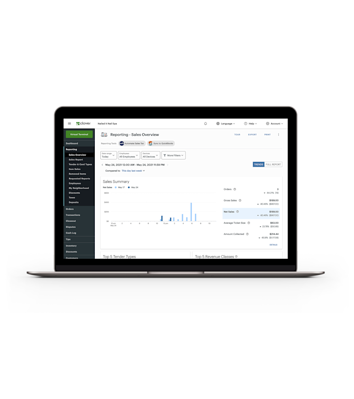 Identify the best and worst performing items, locations, times, and team members with Clover’s sales tracking system.